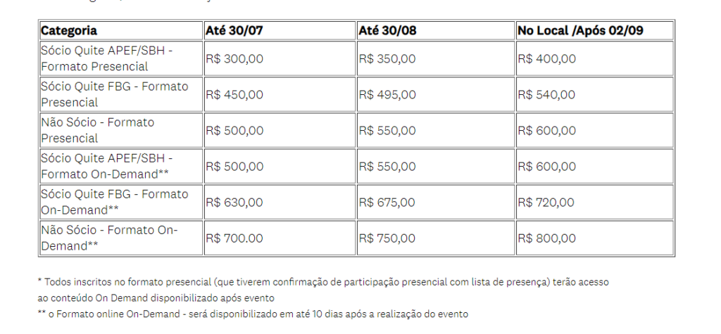 Além dos associados APEF, SBH e FBG que têm desconto especial no valor da inscrição, os associados da categoria Jovem Hepato também poderão aproveitar de um desconto exclusivo.